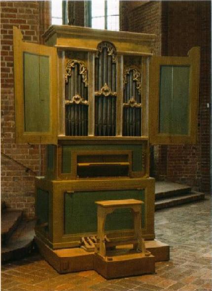 Tastenumfang des Pedals: 8 Tonumfang der Manualwerke: C - c3 Tonumfang des Pedalwerkes: C - H Tiefe Octave der Manuale: Chromatisch unvollständig (C, D, E, F, G, A, B, H) Tiefe Octave des Pedals: Chromatisch unvollständig (C, D, E, F, G, A, B, H) Anzahl der Register: 7 Disposition: |