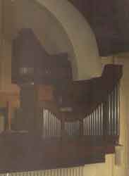 | Anzahl der Transmissionen: - Spielhilfen: Koppeln: Brustwerk an Hauptwerk, Hauptwerk an Pedal, Brustwerk an Pedal Ladentypen: Schleifladen Spieltraktur: mechanisch Registertraktur: mechanisch Temperierung: gleichstufig Balganlage: - Winddruck: - Anzahl der Pfeifenreihen: - Letzte Renovierung: anlässlich gerissener Windladen (Heizungsproblem) Wartung: - Orgelspieler: Nebenamtlicher Kirchenmusiker Einsatz der Orgel: Gottesdienste, andere Gemeindeveranstaltungen, Konzerte Kommentar: Dulzian 8' ist ein Regalregister mit konischen, teilgedeckten Bechern  Informationsstand: 28. Dezember 2017 Zuletzt geändert am 31. März 2018  E-Mail an Dr. Kurt Pages    | ||||