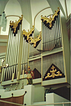 Oktave der Manuale: Chromatisch vollständig Tiefe Oktave des Pedals: Chromatisch vollständig Anzahl der Register: 31 Disposition: | ||||