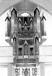 Pedalwerk: Prinzipal 16' (Holz) Subbass 16' Principalbass 8' Gedacktbass 8' Koppelflöte 4' Nachthorn 2' Basszink 3f. 5 1/3' + 3 1/5' + 2 2/7' Mixtur 4f. Posaune 16' |